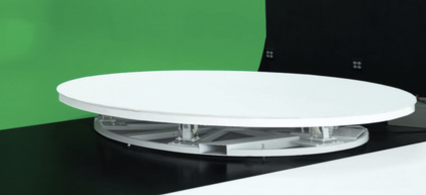 Custom-made 9 foot turntable with a control box, variable speeds + remote control, making it easy to get the perfect rotation for projects.